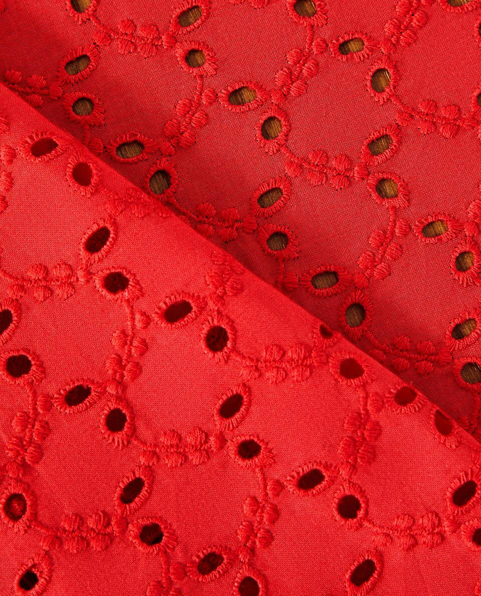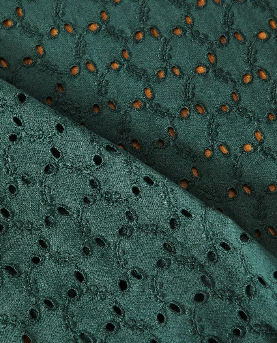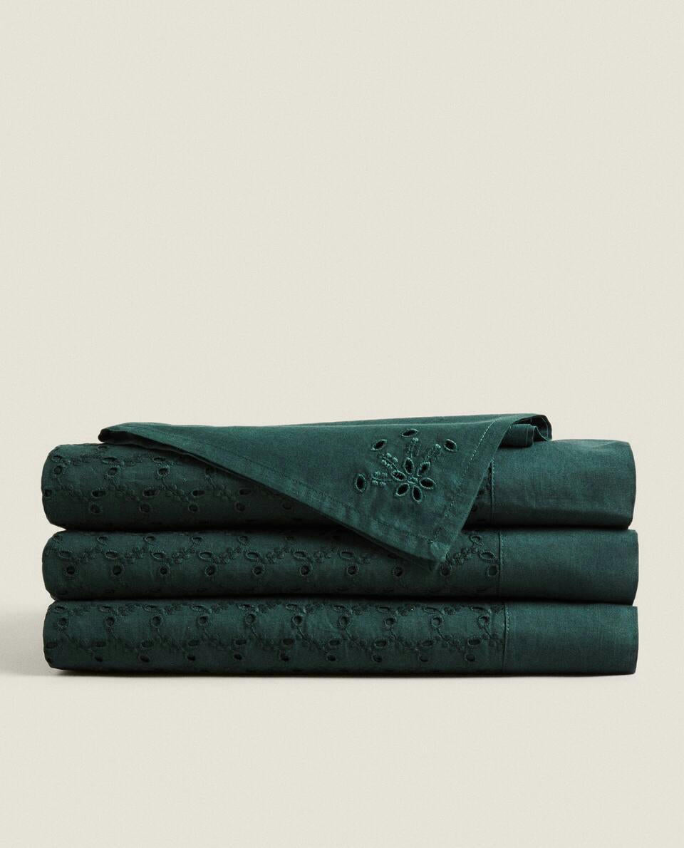 Mantel navideño de algodón con bordado y calado inglés.