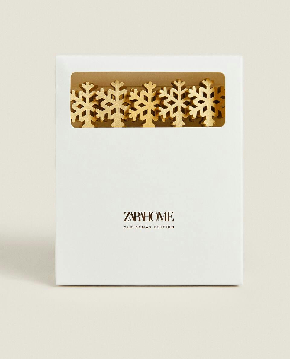 Paquete de brochetas de madera con copos de nieve navideños en la parte superior.Paquete de 10.