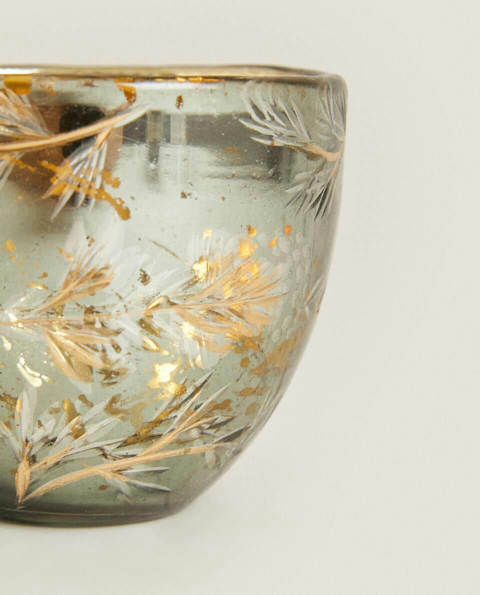 PORTAVELAS PEQUEÑO DE VIDRIO MERCURIADO PARA NAVIDAD
