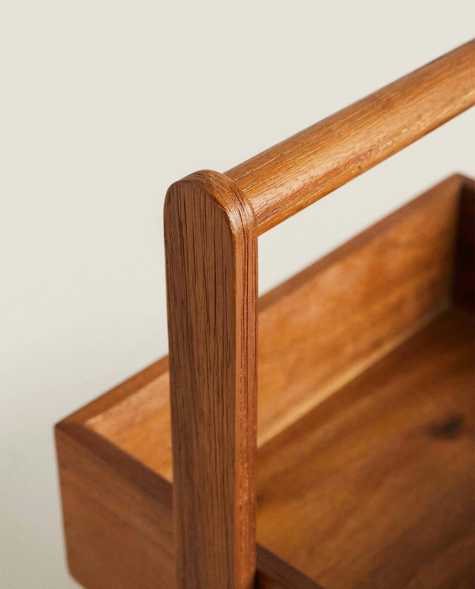 Esta unidad de almacenamiento de madera de acacia de estilo contemporáneo combina dos espacios de almacenamiento a diferentes alturas.Con esta unidad de almacenamiento todo estará limpio y ordenado.