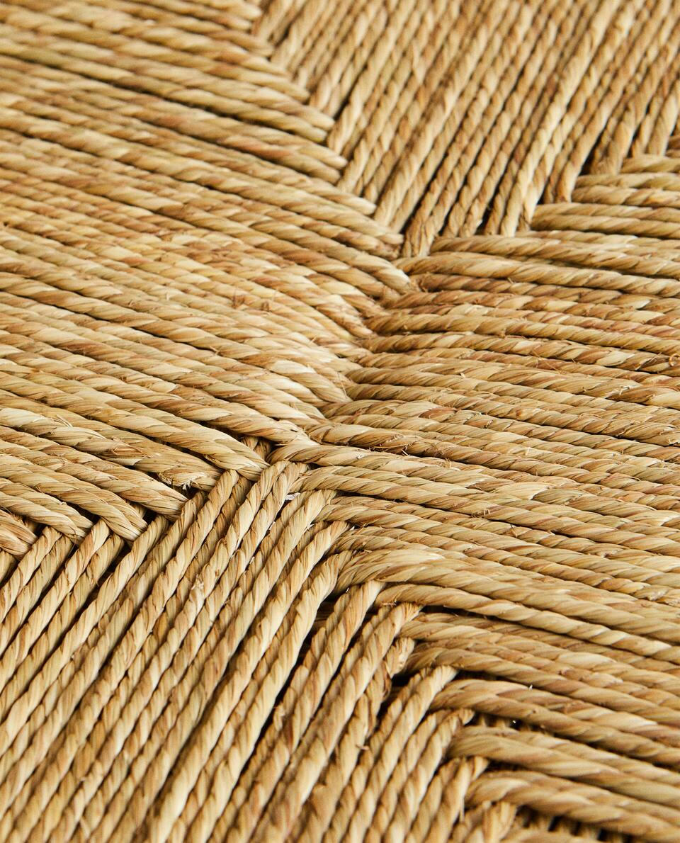 Taburete de bar con estructura de fresno y base y respaldo de alga marina trenzada.Distancia del asiento al suelo: 65 cm.