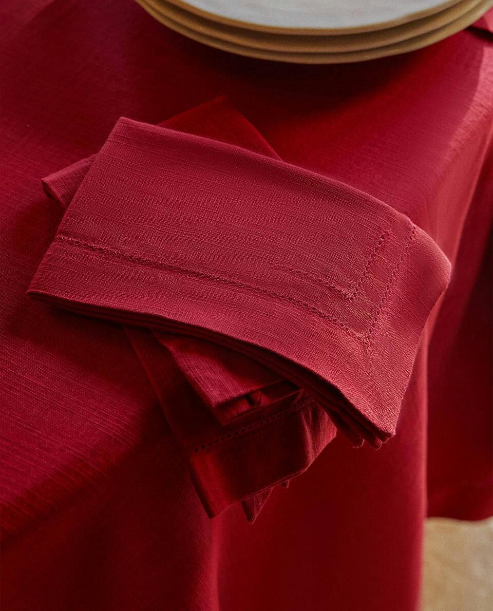 Tovaglioli natalizi in cotone con orlo a giorno lungo il bordo.Confezione da 2.