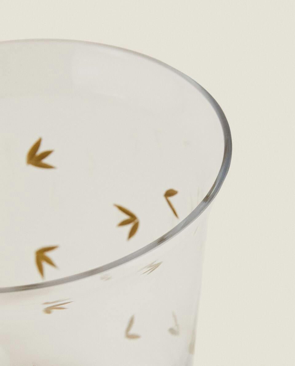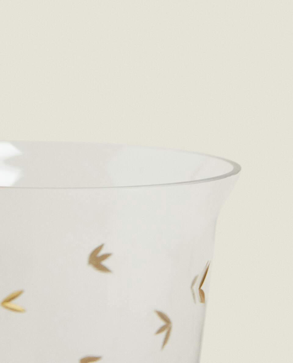 Bicchiere alto in vetro con foglie d'oro incise, per Natale.
