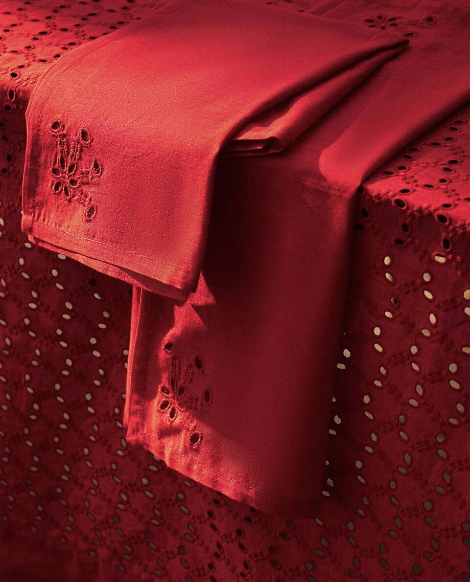 Tovaglioli natalizi in cotone con ricamo e ricamo inglese traforato.Confezione da 2.