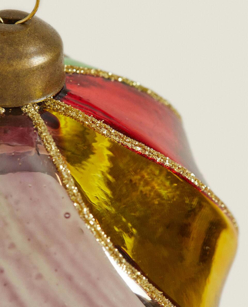 Decorazione per albero di Natale in vetro, con strisce a spirale multicolori e glitter. Completa di nastro di velluto per appenderla.
