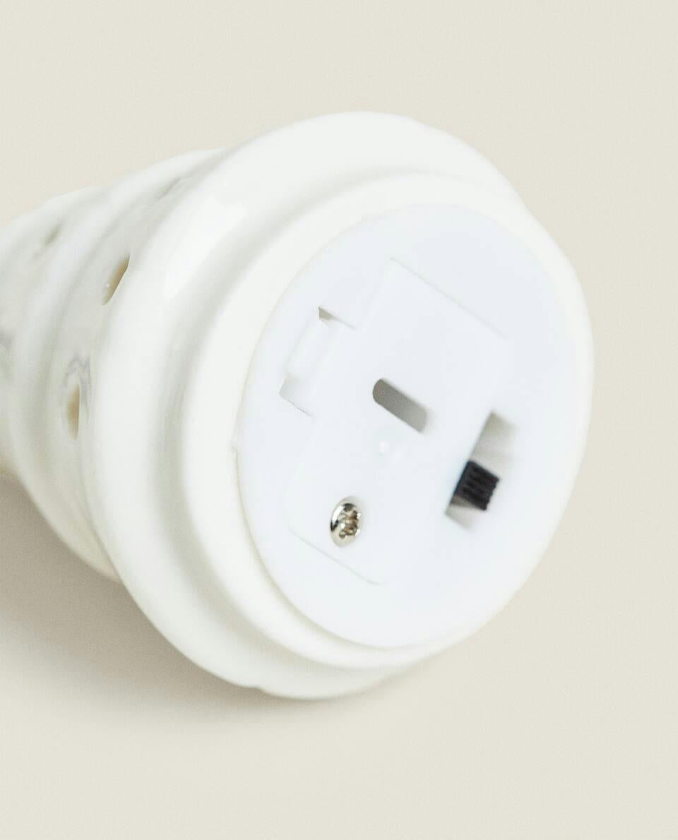 Decorazione natalizia in porcellana a forma di albero di Natale con luce e nastro di velluto per appenderla.Batterie incluse.