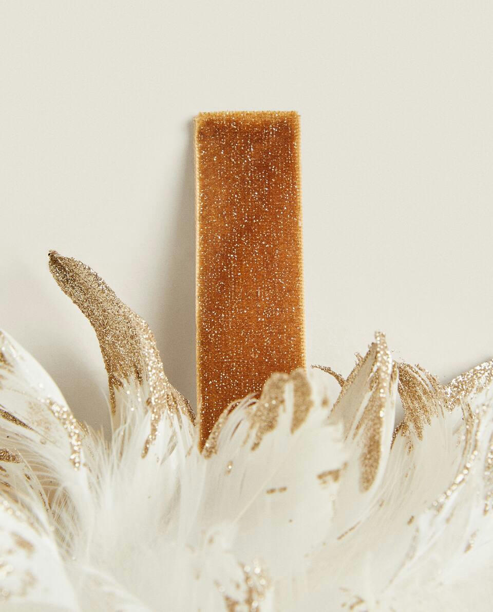 Ghirlanda natalizia decorativa, con piume e brillantini.