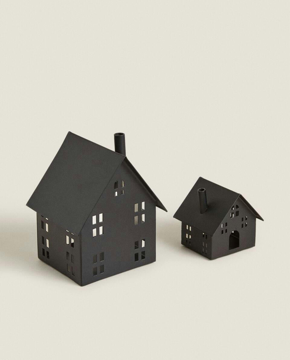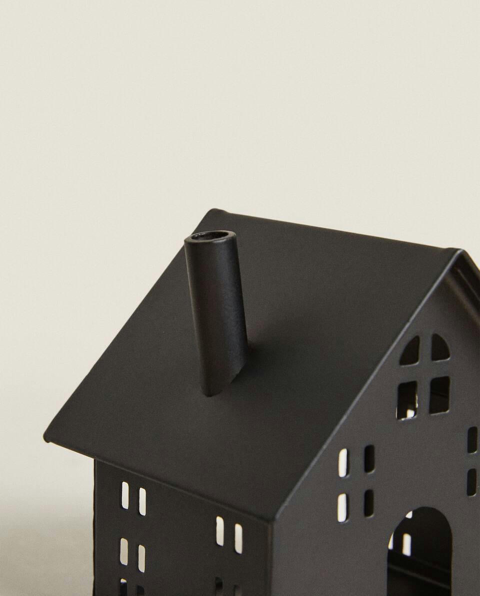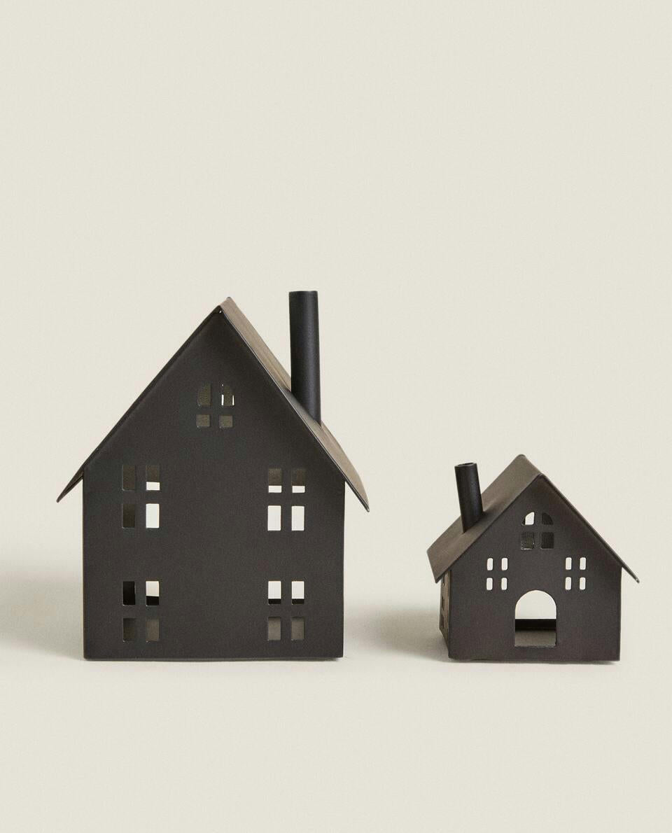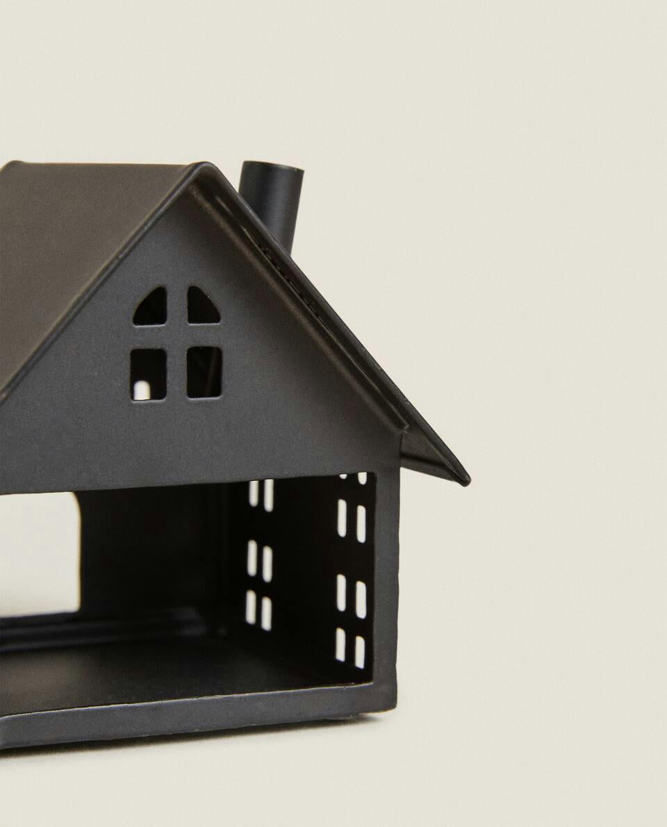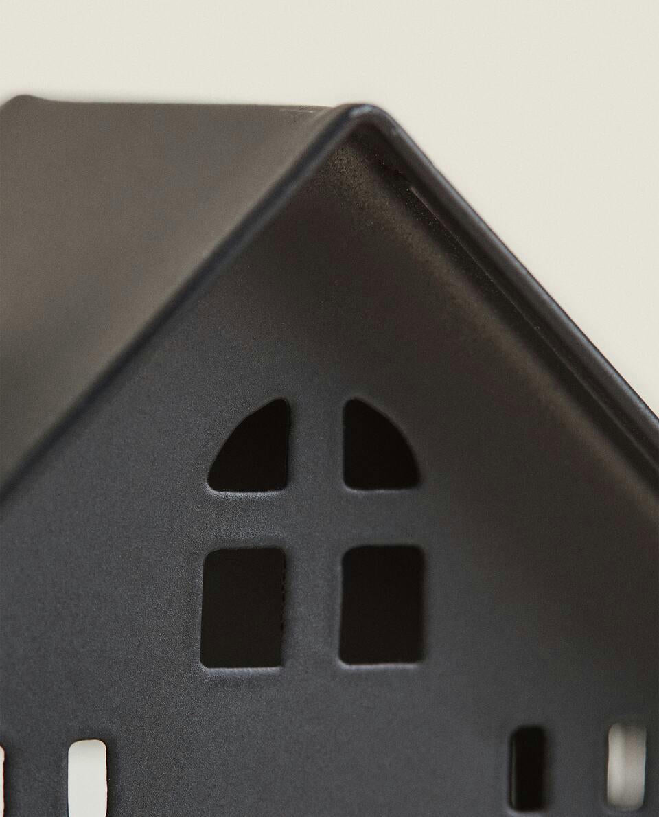 Decorazione natalizia in metallo a forma di casa.