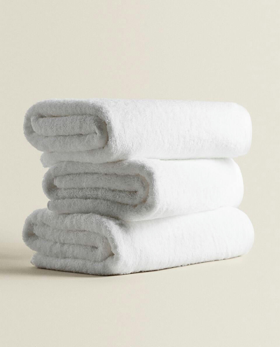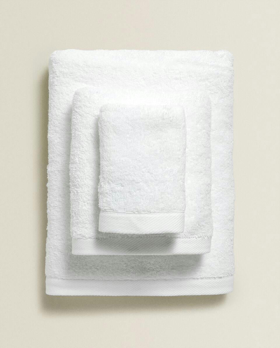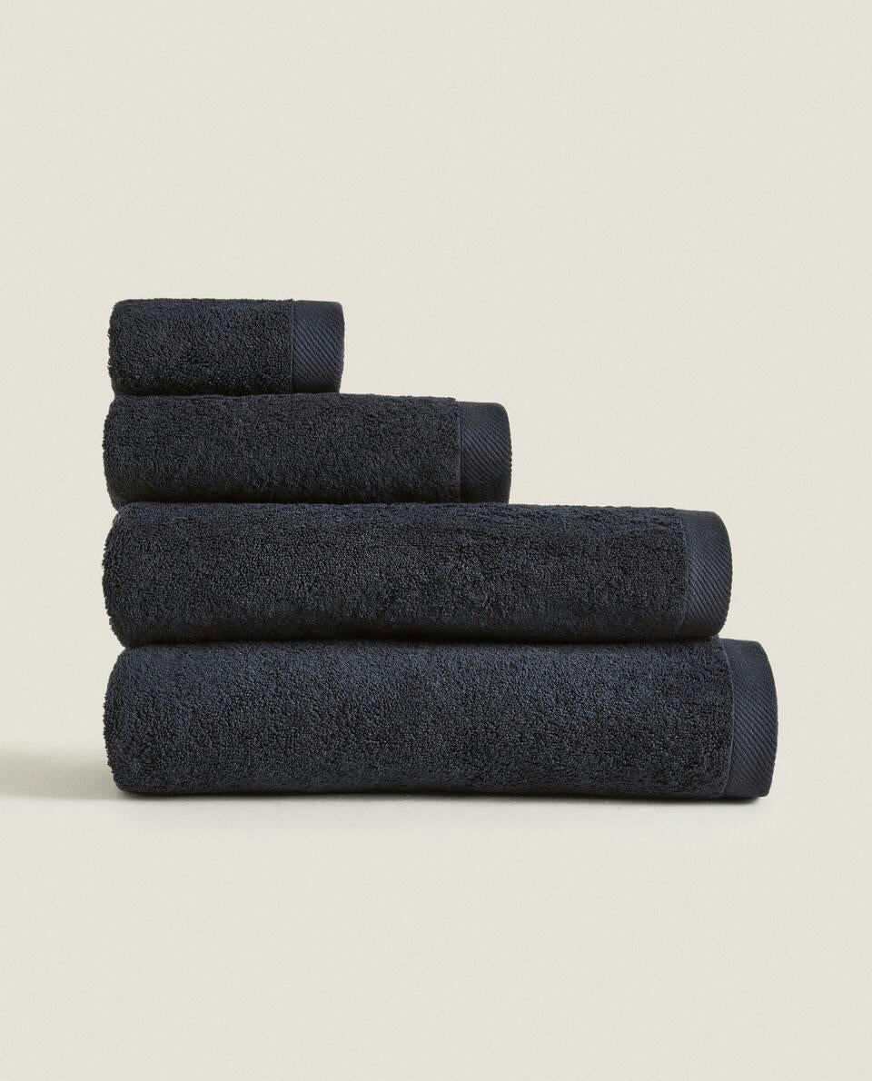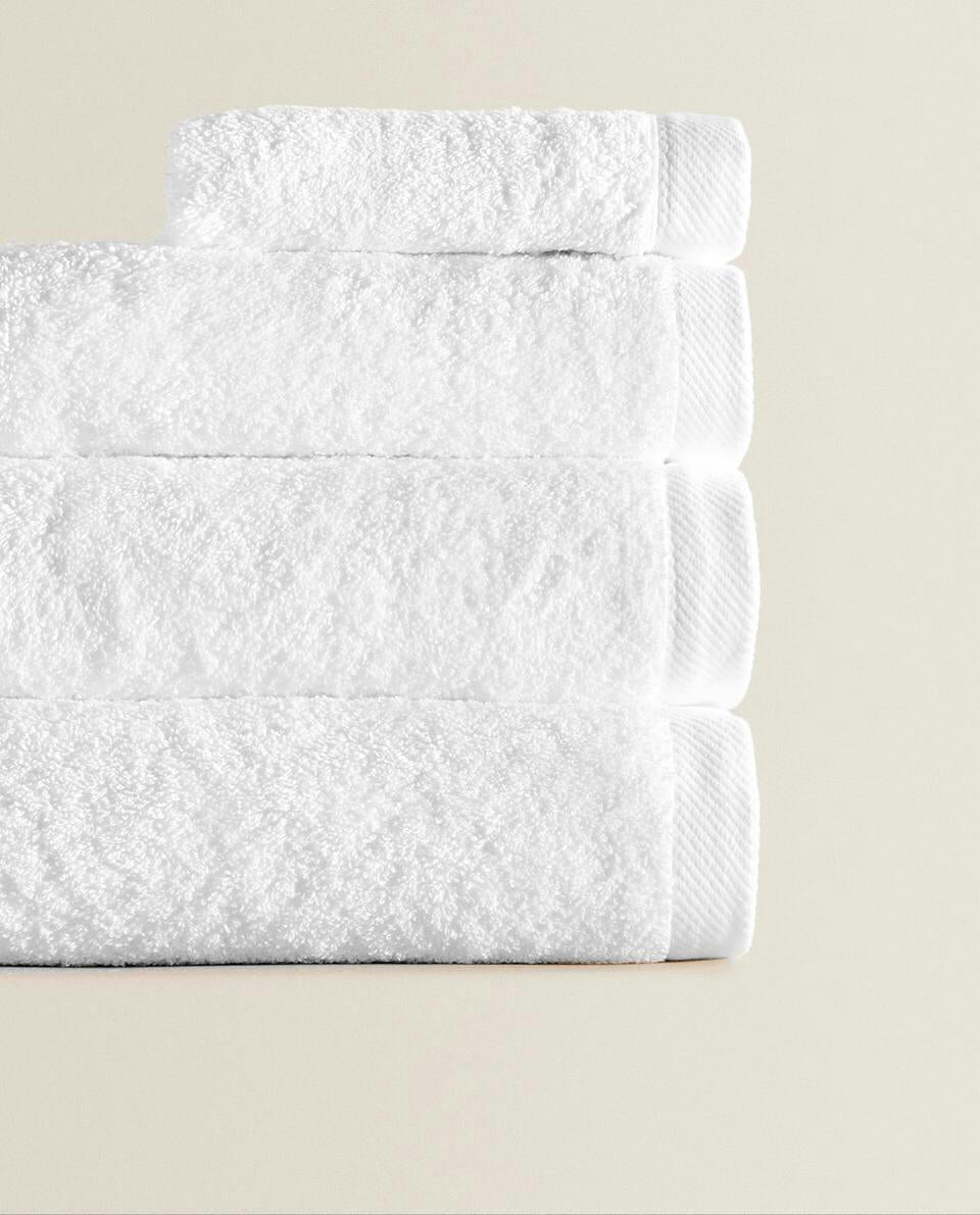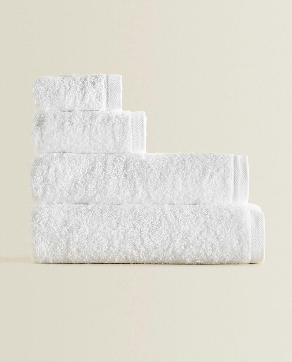 Asciugamano da bagno in spugna di cotone da 500 g/m² con motivo a tinta unita.