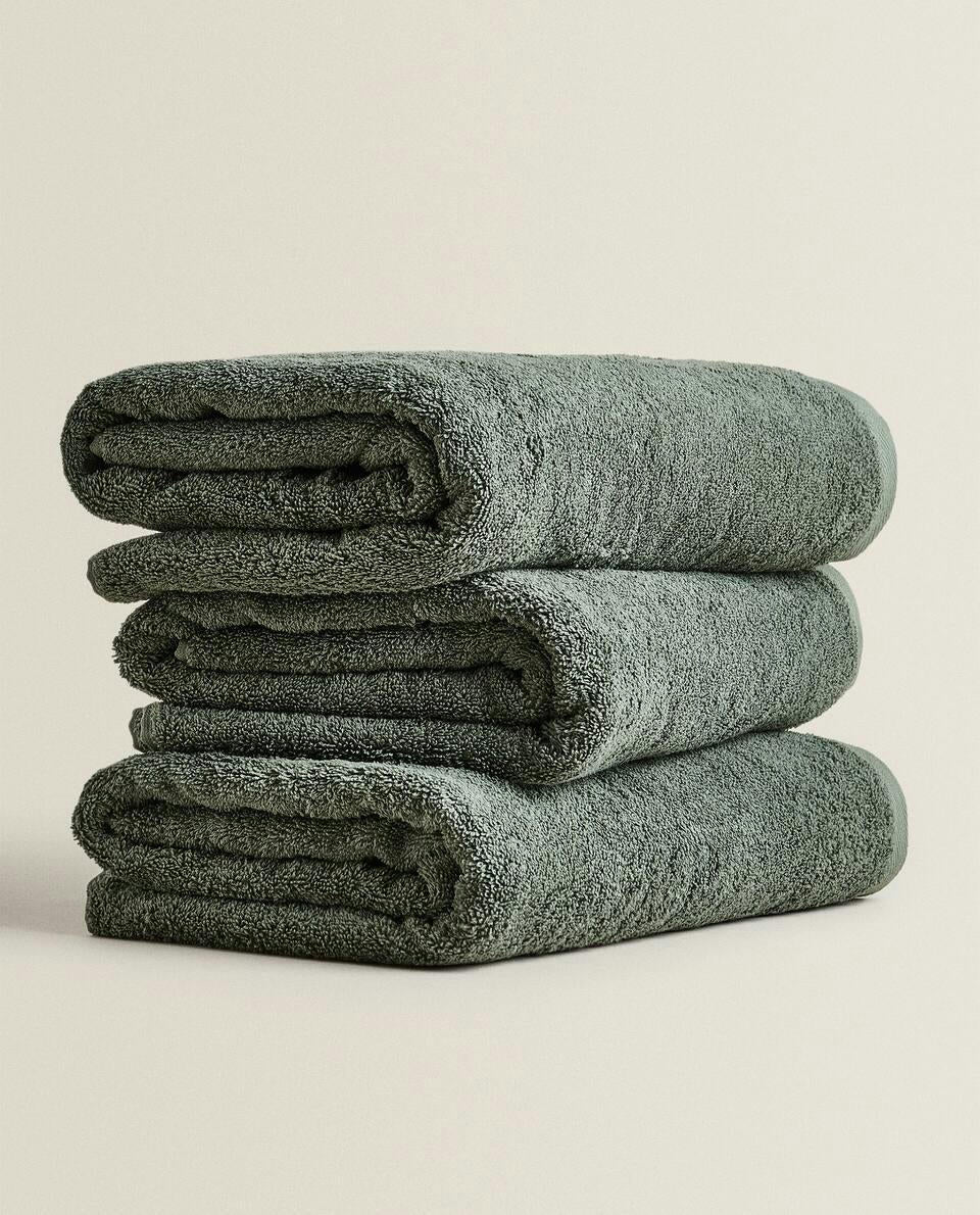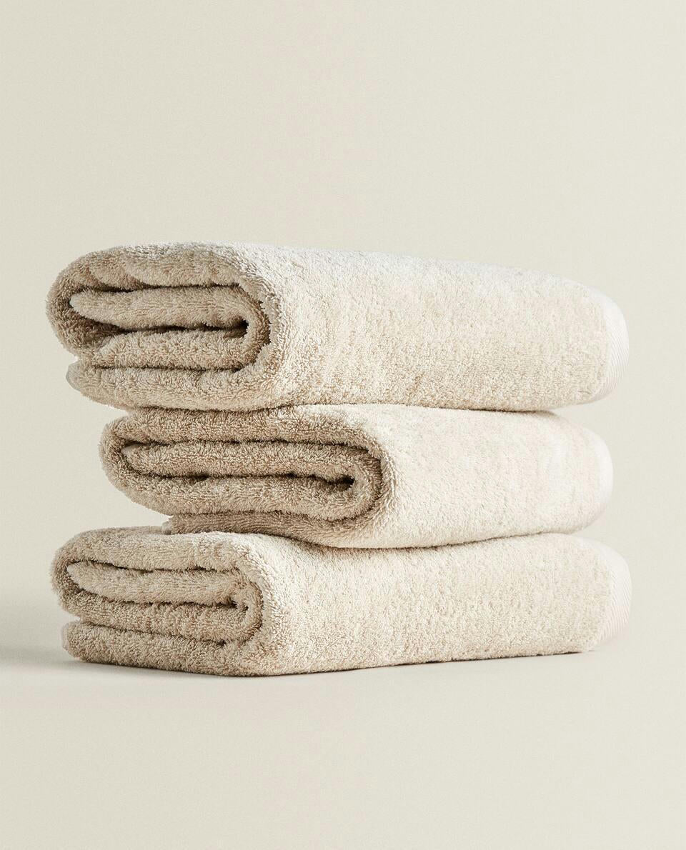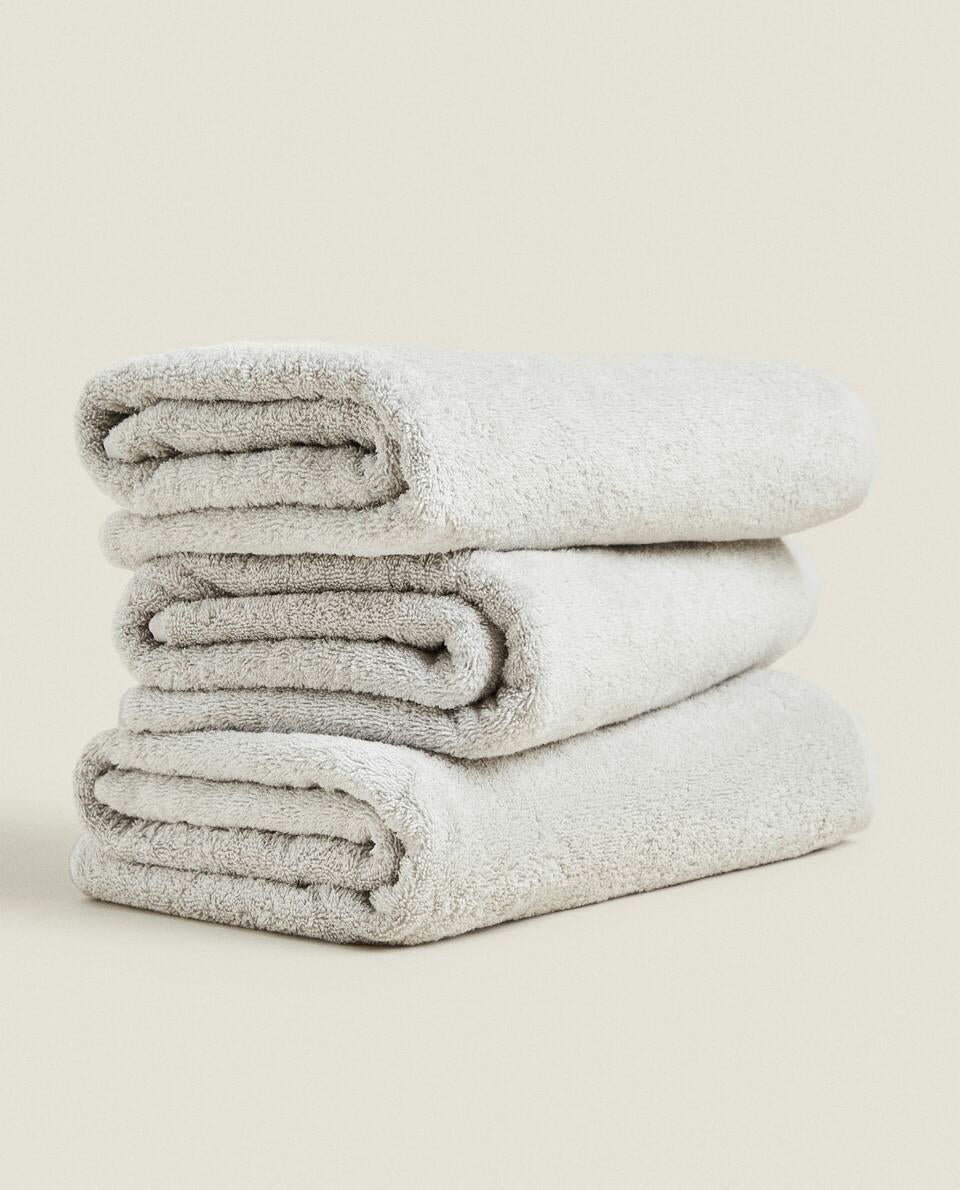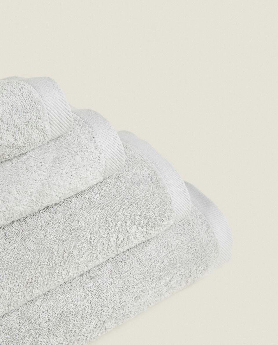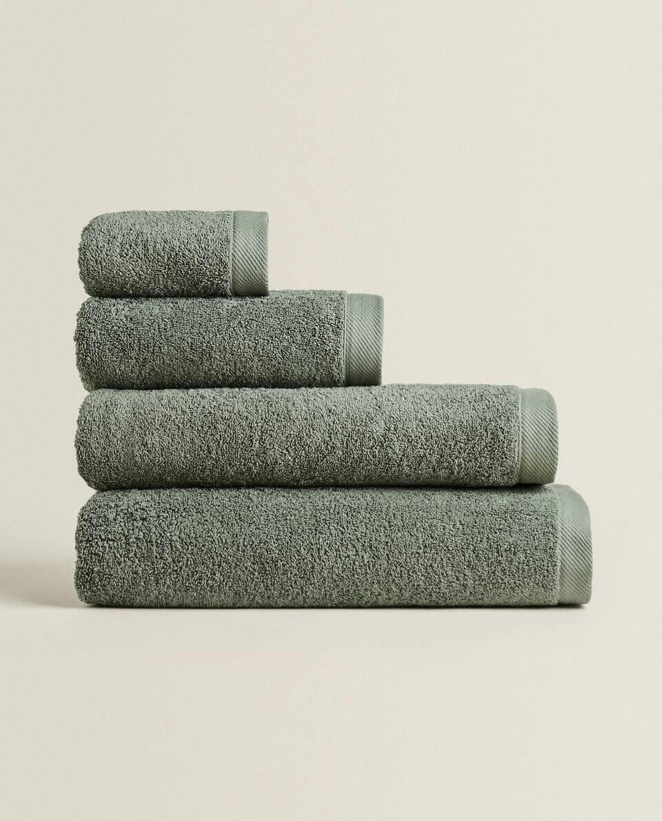 Asciugamano da bagno in spugna di cotone da 500 g/m² con motivo a tinta unita.