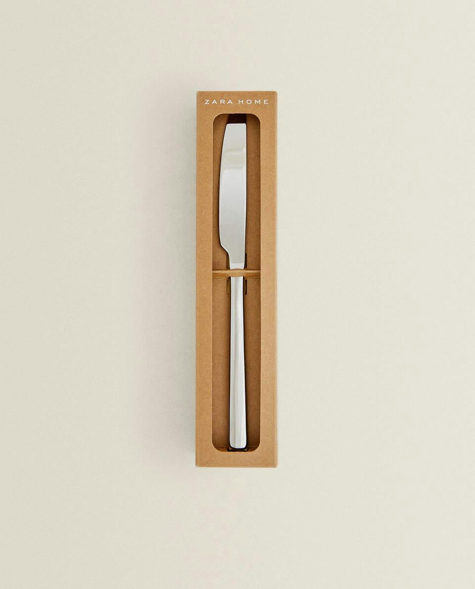 Set di 4 coltelli da tavola in acciaio inox color argento. Manico dritto e finitura lucida.