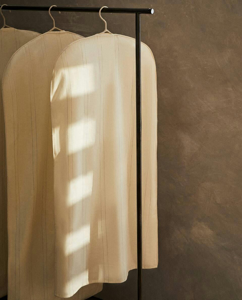 Confezione di fodere protettive per indumenti in cotone e lino con motivo a righe verticali.Confezione da 2.