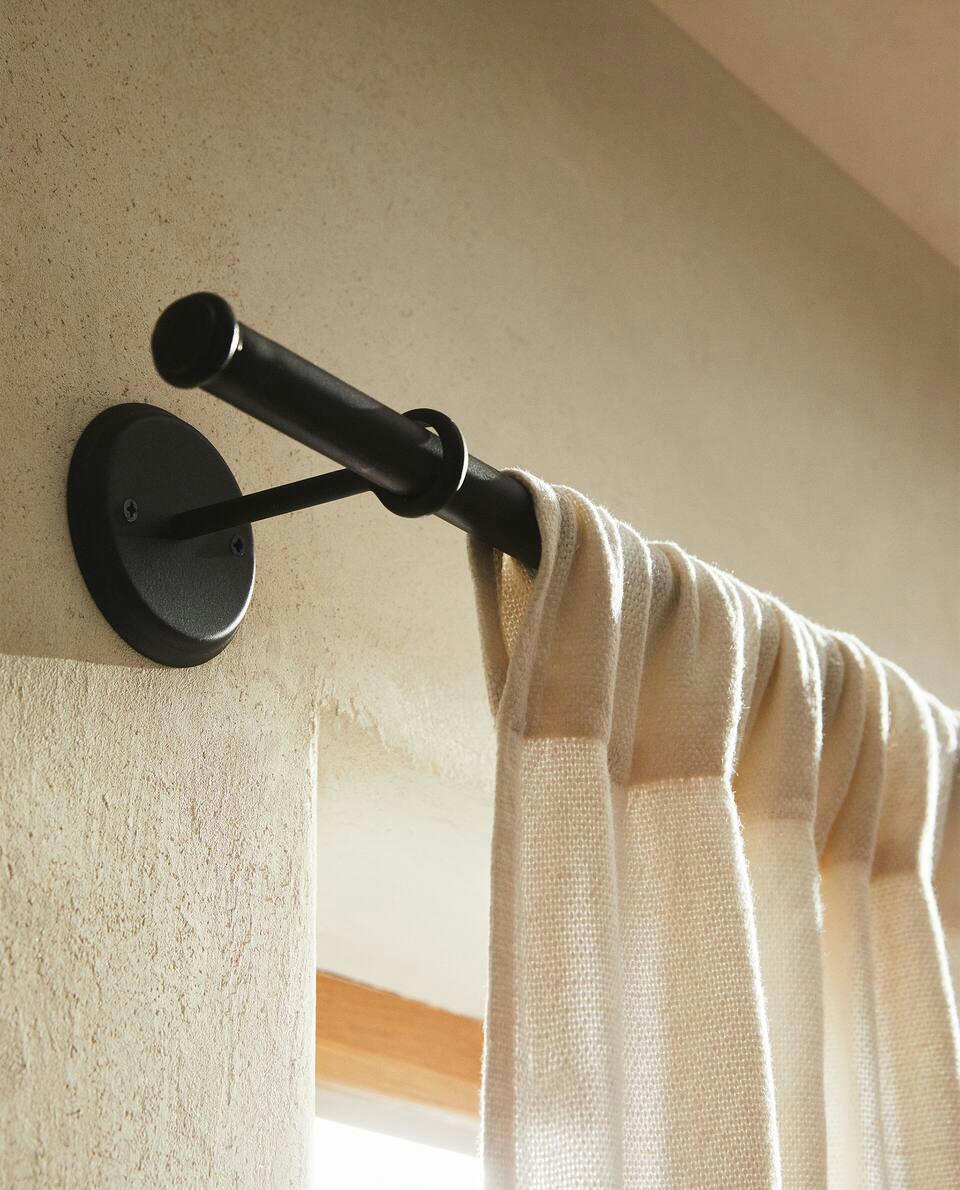 Binario per tenda in ferro.Include due tasselli con fori per il fissaggio alla parete.