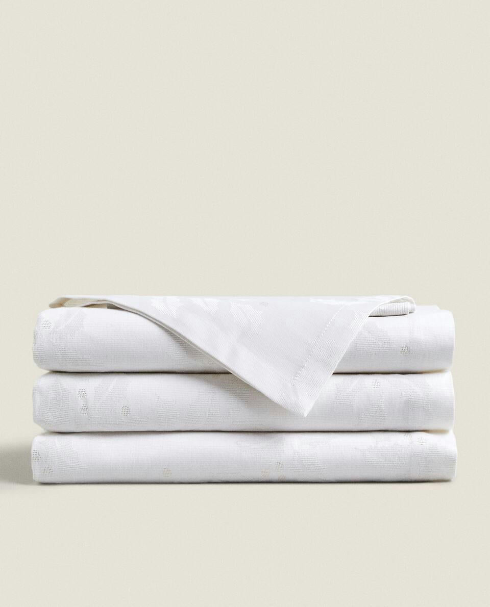 Cotton tablecloth with a Christmas floral jacquard and glitter design.