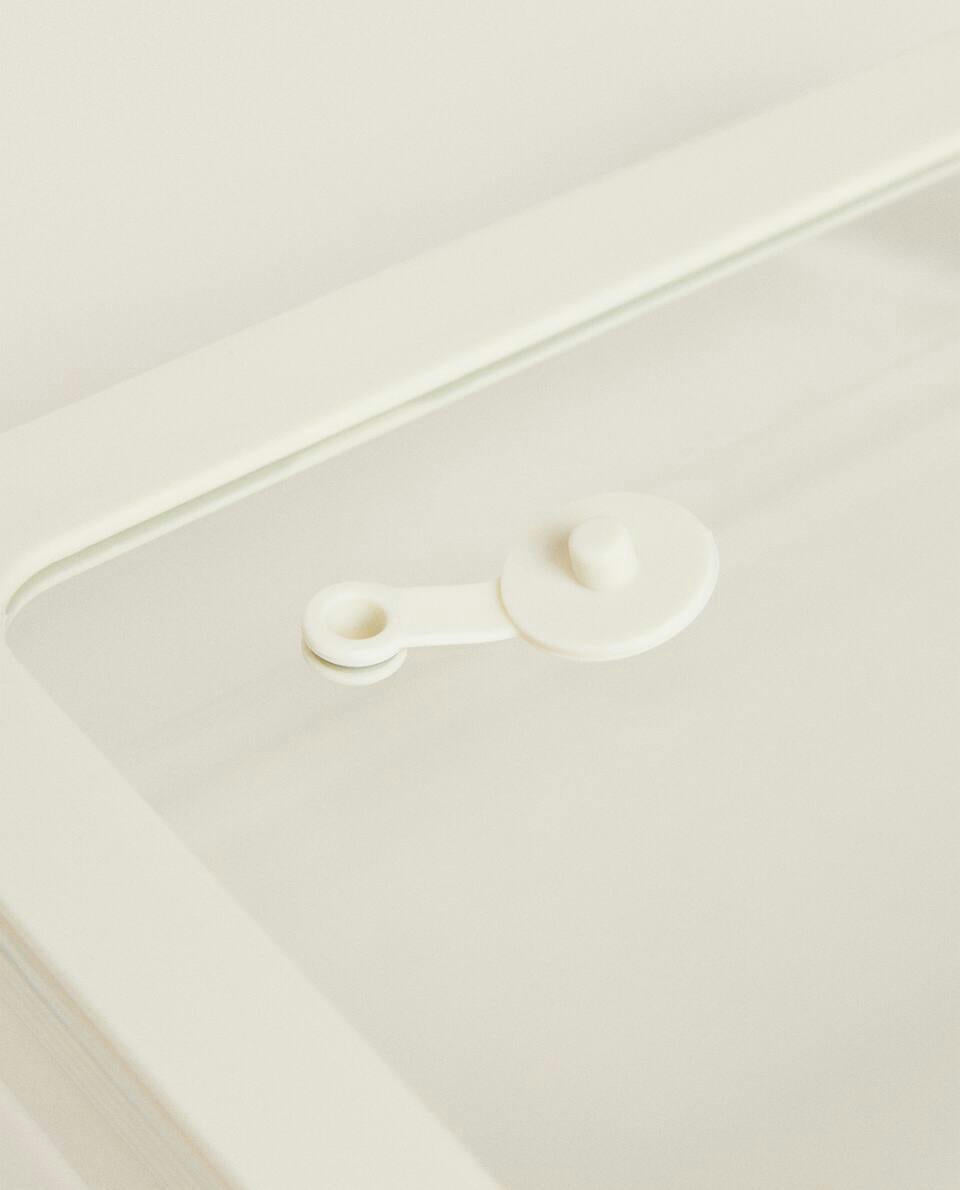 Transparent rectangular airtight container with a capacity of 700 ml.