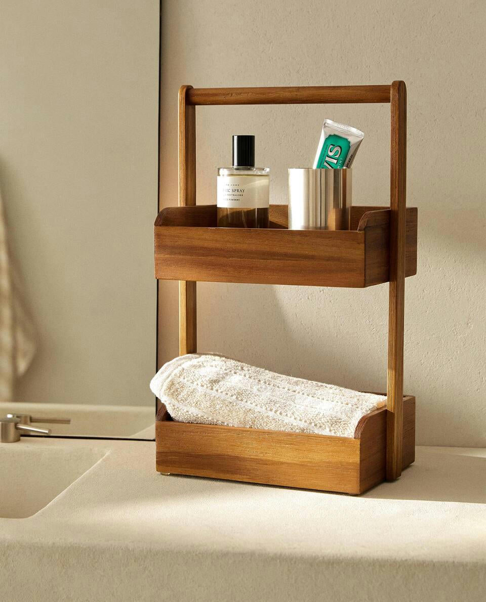 This contemporary-style acacia wood storage unit combines two storage spaces at different heights.With this storage unit, everything will be neat and tidy.