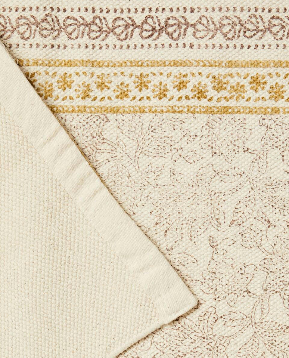 Lightweight rug featuring an all-over contrast print and fringed trim.