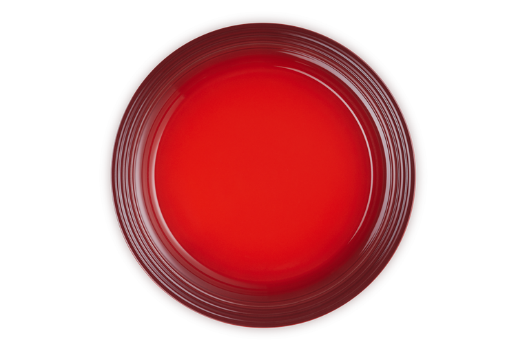 Brighten up your table with this classic stoneware dinner plate. It features a recessed base to keep liquids contained. That means fewer spills and more freedom to serve up all sorts of delicious dishes. The rim features Le Creuset's distinctive three-ring design ¨C a nod to those in the know.