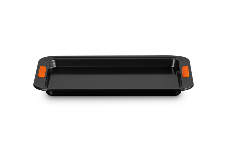 Bake a delicious swiss roll or roulade using this high performance tin, or get creative and use it as a cookie sheet, or even as a tray for roasting your favourite root vegetables. The non-stick coating releases food instantly, while heat-resistant silicone inserts make lifting safe and easy.
